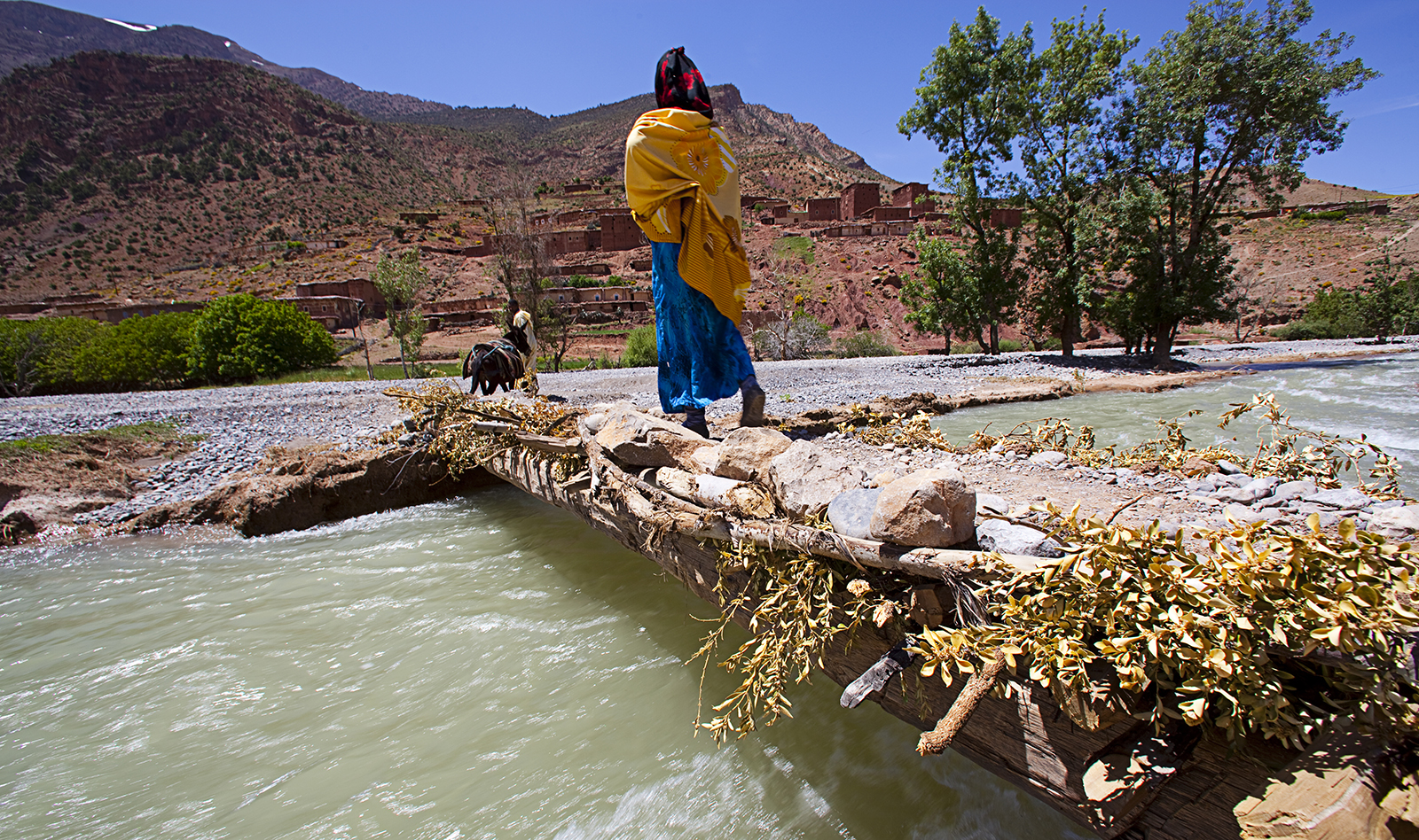 Puis en suivant les sentiers d’altitude utilisés depuis des siècles par ces pasteurs nomades, vous descendrez vers la vallée d’Anergui par un sentier en balcon taillé dans la montagne en surplomb des gorges de l’assif Melloul.